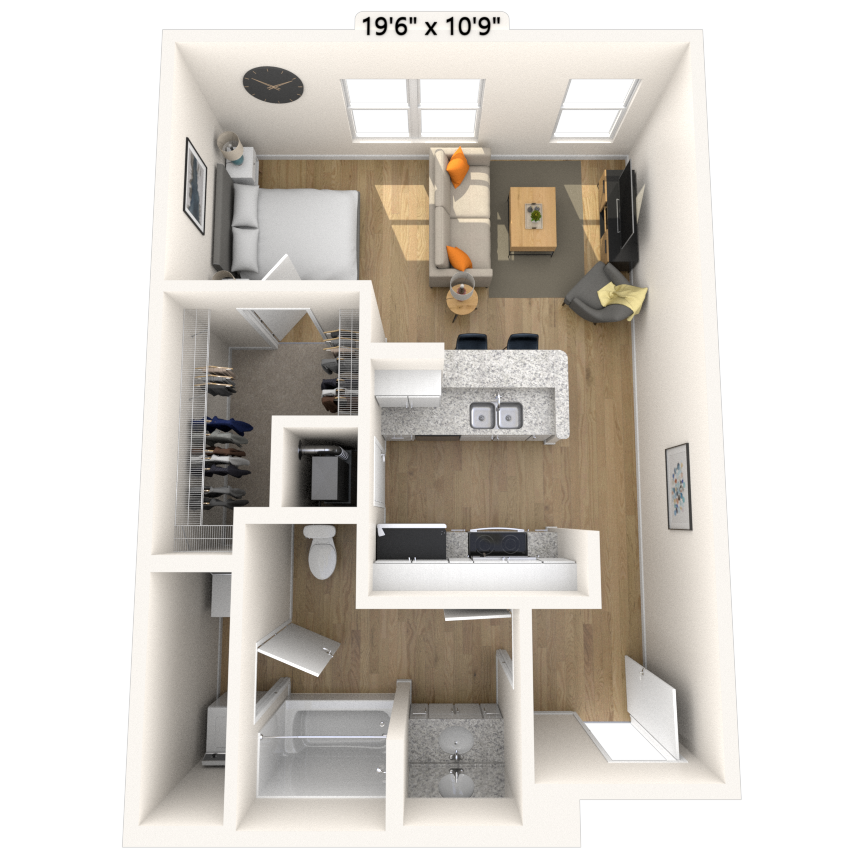 Studio, 1 Bath, 488-595 sq ftAvailable Oct 15Model Gallery