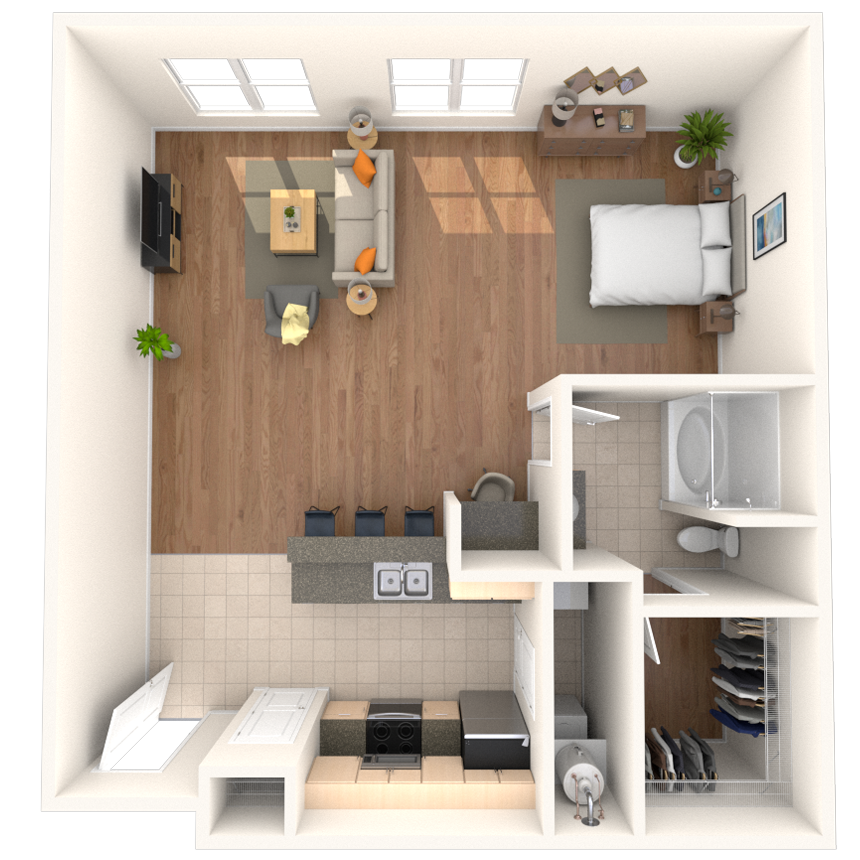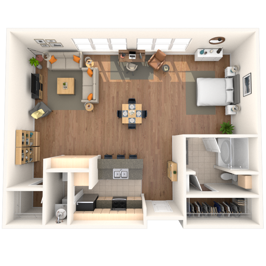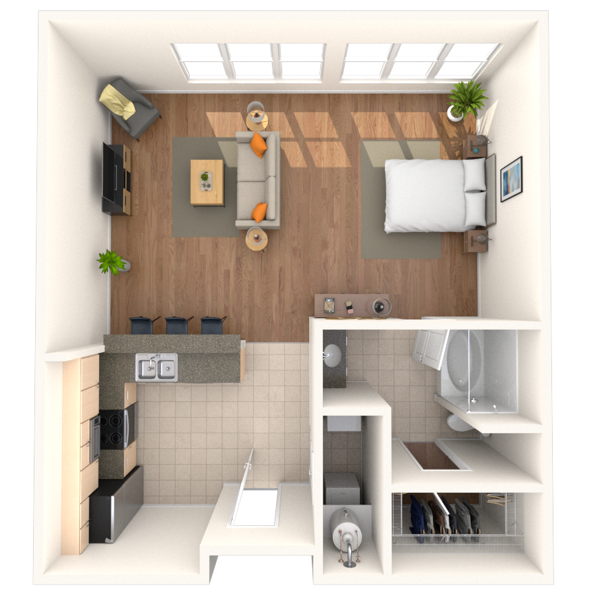Studio, 1 Bath, 817-843 sq ftAvailable NowModel Gallery