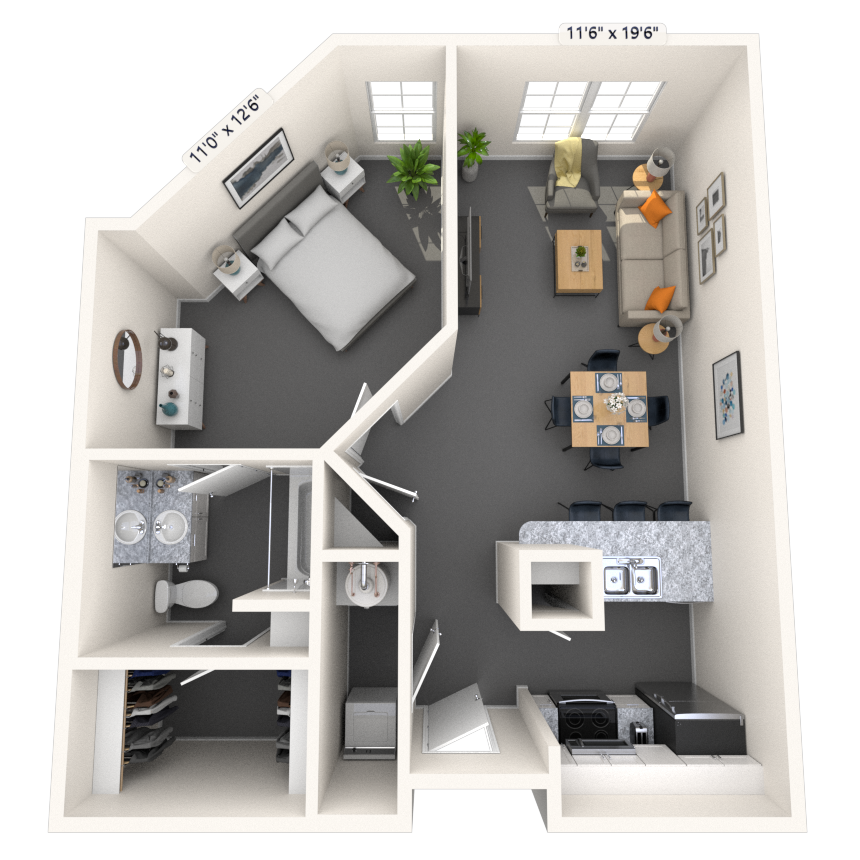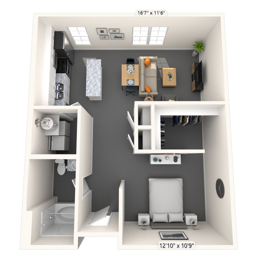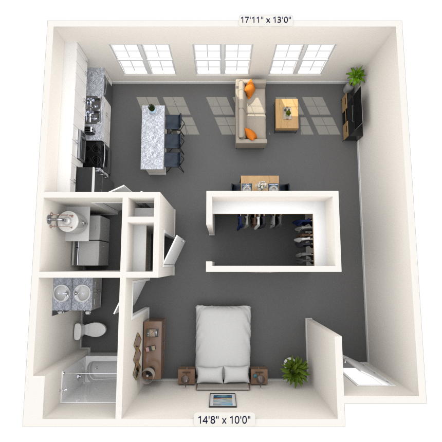 Studio, 1 Bath, 665-694 sq ftAvailable NowModel Gallery
