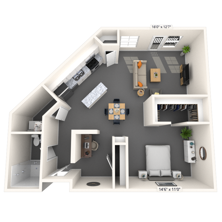 Studio, 1 Bath, 583 sq ftAvailable NowModel Gallery