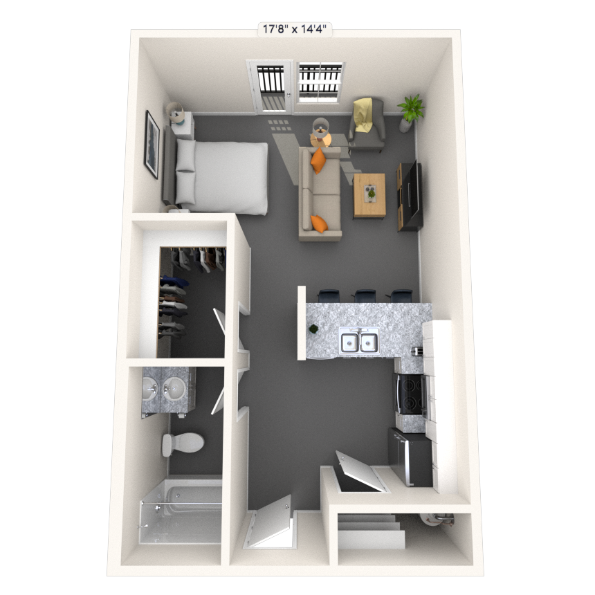 Studio, 1 Bath, 500-583 sq ftAvailable NowModel Gallery