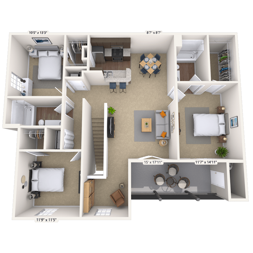 1 Bedroom to 3 Bedroom Apartments at MAA Liberty Park currently range from $1,213 to $1,878