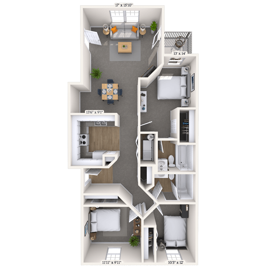 Apartment Model: The OakmontFrom $1,0431 Bedroom, 1 Bath, 650 sq ftAvailable Now![]()