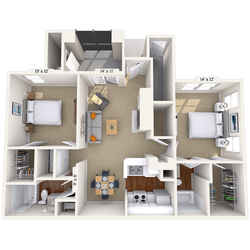 2 Beds, 2 Baths, 1049 sq ftAvailable NowAvailability Details