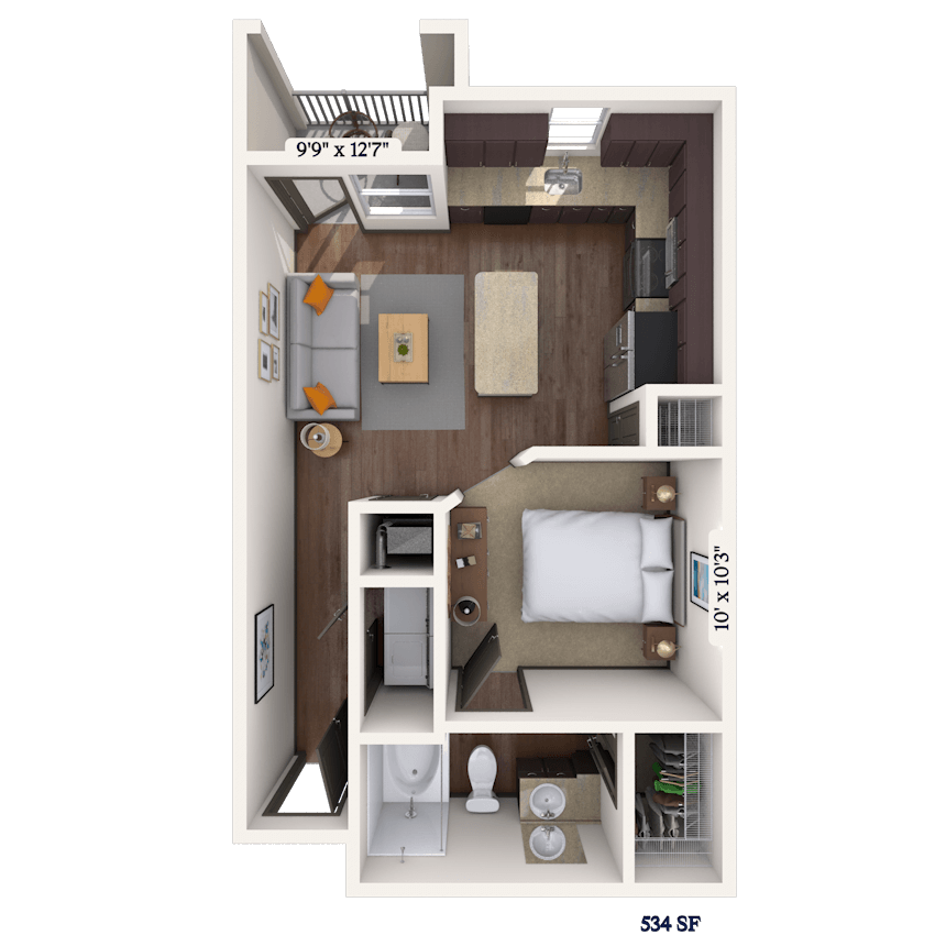 Studio, 1 Bath, 534 sq ftAvailable January 4, 2026Model Gallery