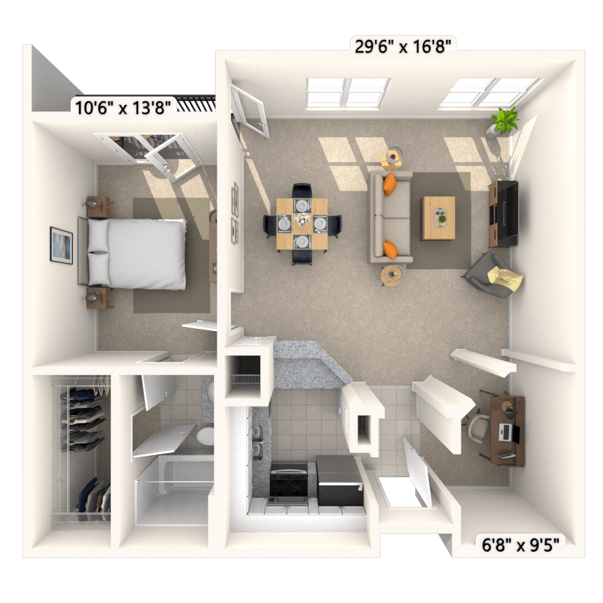 Studio, 1 Bath, 580-606 sq ftAvailable NowCheapest StudioThis is the cheapest Studio at this PropertyModel Gallery