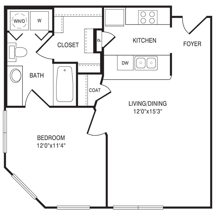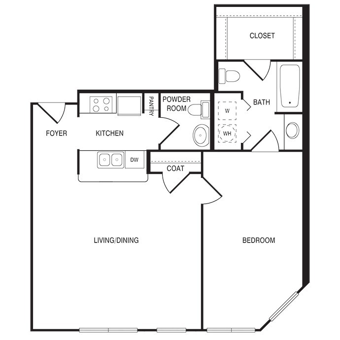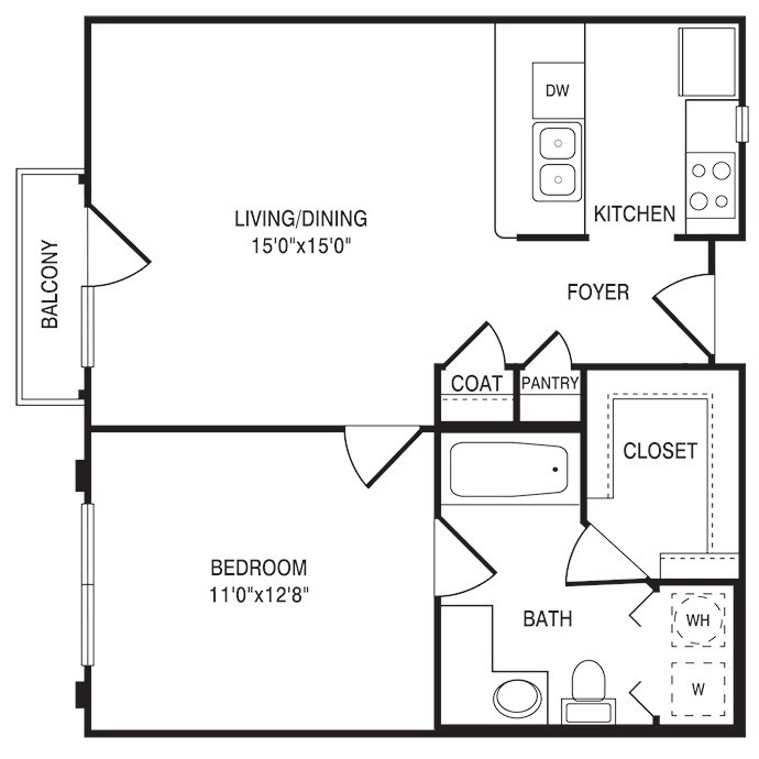 Apartment Model: Traditional 1x1 606-727 SF1 Bedroom, 1 Bath, 693-727 sq ftUnavailable![]()