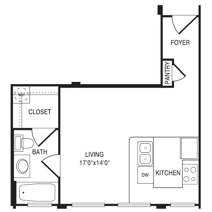 Studio 0x1 415-428 SF - Floorplan 1 Studio 0x1 510-693 SF