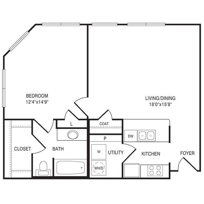 Traditional 1x1 485-660 SF - Floorplan 1 Traditional 1x1 580-935 SF