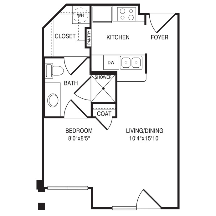 Apartment Model: Studio 0x1 415-428 SFStudio, 1 Bath, 415 sq ftUnavailable![]()