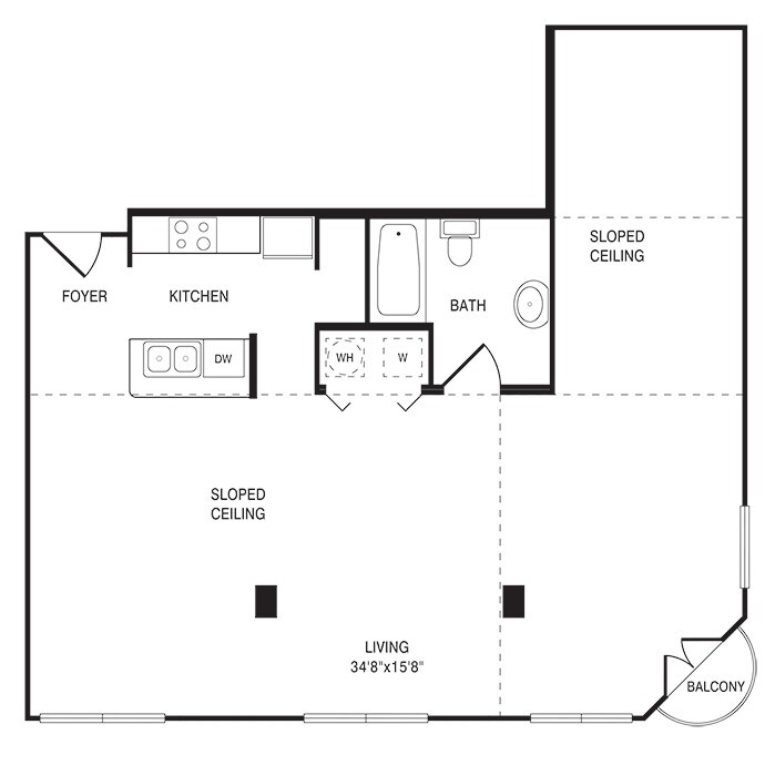 Studio 1x1 950 SF - Floorplan 1 Studio 1x1 1026-1036 SF