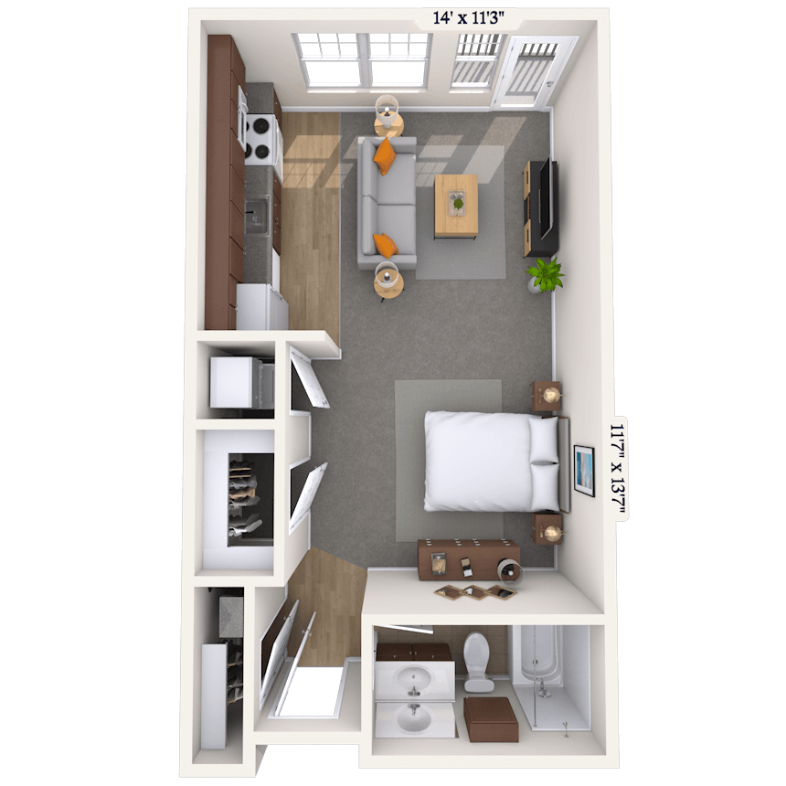 01B - Floorplan 1 Apartment Unit: 014206Apartment Model: 01B$1,233Studio, 1 Bath, 557 sq ftAvailable February 5, 2026![]()