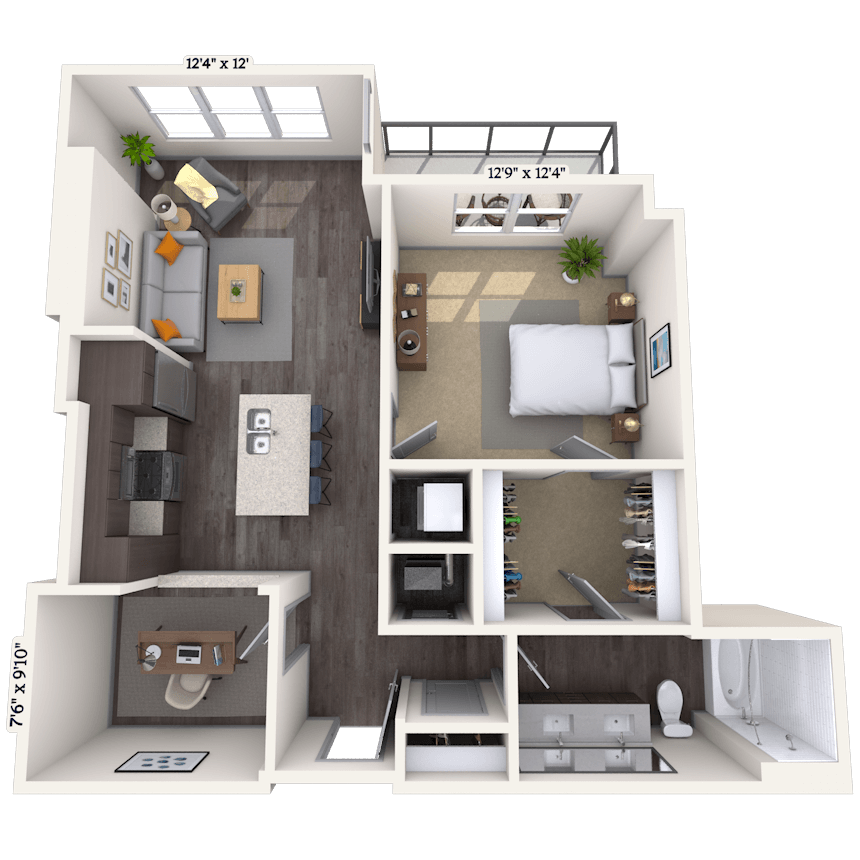 Studio, 1 Bath, 555 sq ftAvailable NowModel Gallery