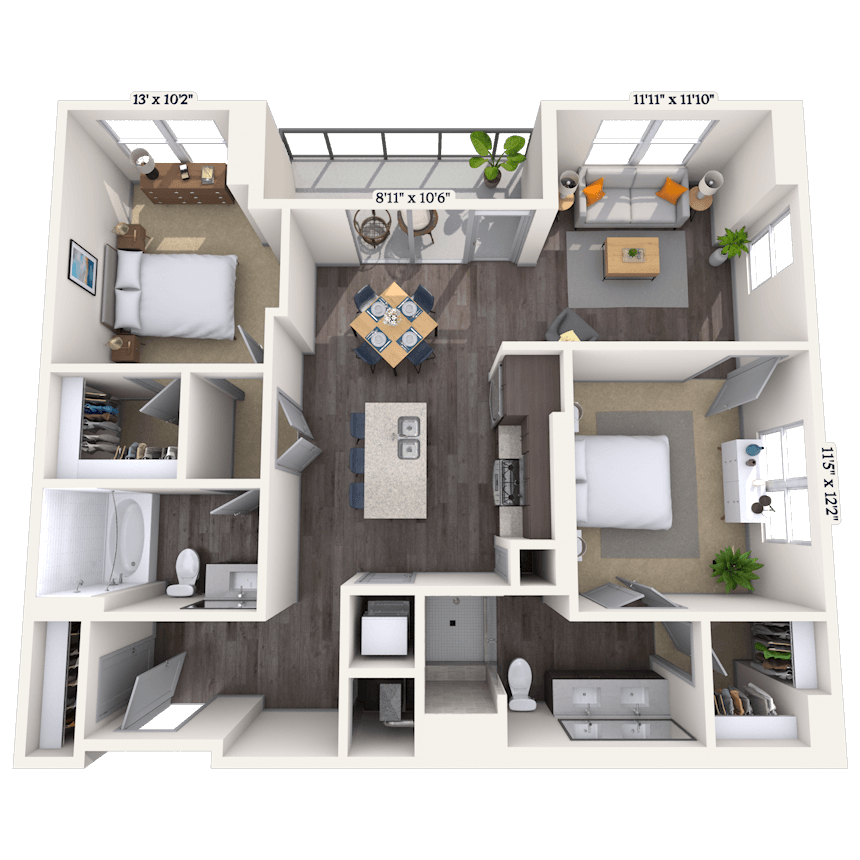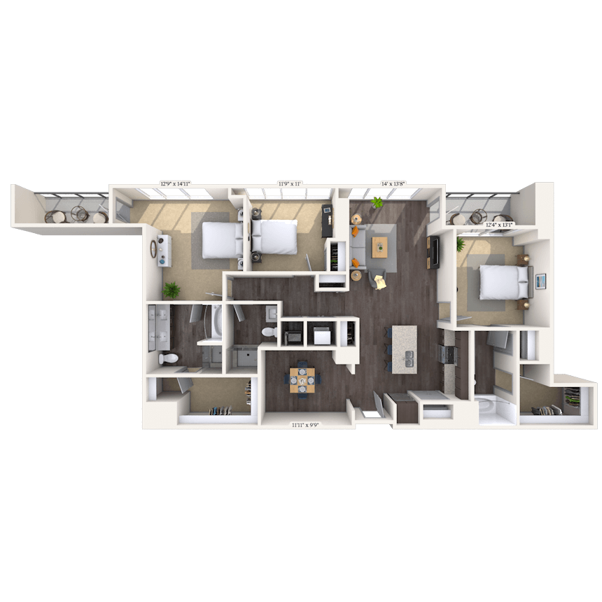 Apartment Model: Traditional 1x1 859-866 SFFrom $2,4001 Bedroom, 1 Bath, 859 sq ftAvailable Now![]()