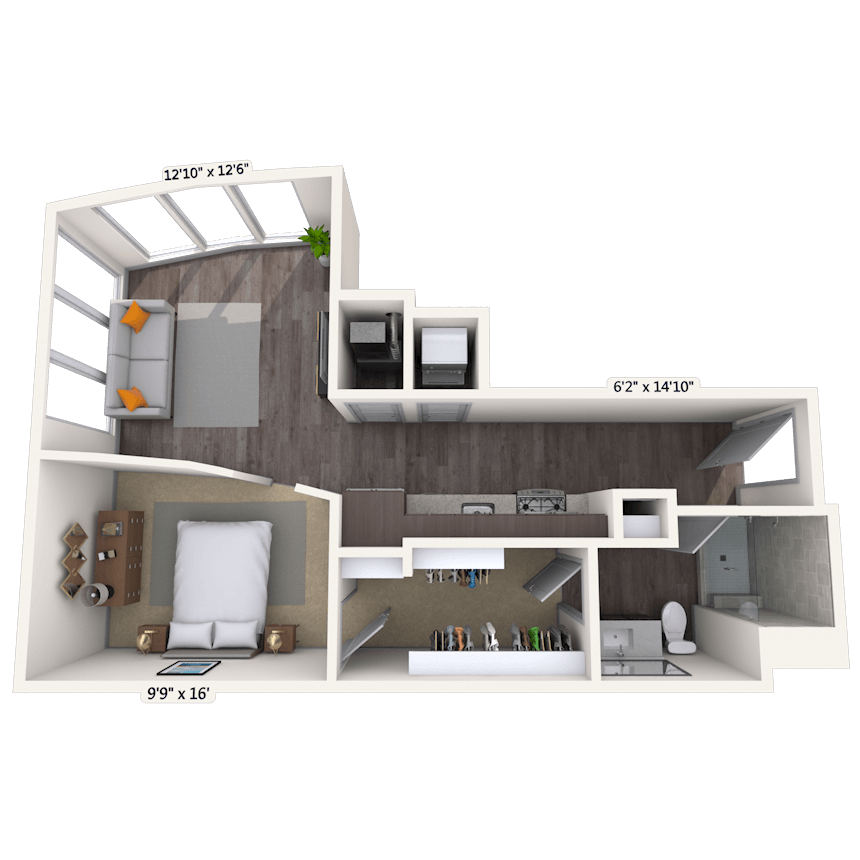 Studio 0x1 555 SF - Floorplan 1 Apartment Unit: 2004Apartment Model: Studio 0x1 555 SF$1,750Studio, 1 Bath, 555 sq ftAvailable Now![]()