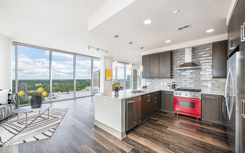TOUR YOUR WAY! We have a tour to fit your needs- virtual, self-guided, or agent-guided. Find your next home at MAA Midtown in Atlanta, GA. These studio, one-bedroom, two-bedroom, and three-bedroom apartments feature floor-to-ceiling windows and designer kitchens with glass tile backsplashes and gourmet gas ranges. MAA Midtown is equipped to anticipate your every need. Relax in the rooftop pool, or wash and maintain your bike in the cycle room. The on-site dog park includes a pet spa and grooming area that welcome all breeds. Living in Midtown Atlanta, you're close to numerous upscale restaurants, shops, and entertainment venues. The Midtown MARTA Station and Piedmont Park are also just steps away.
