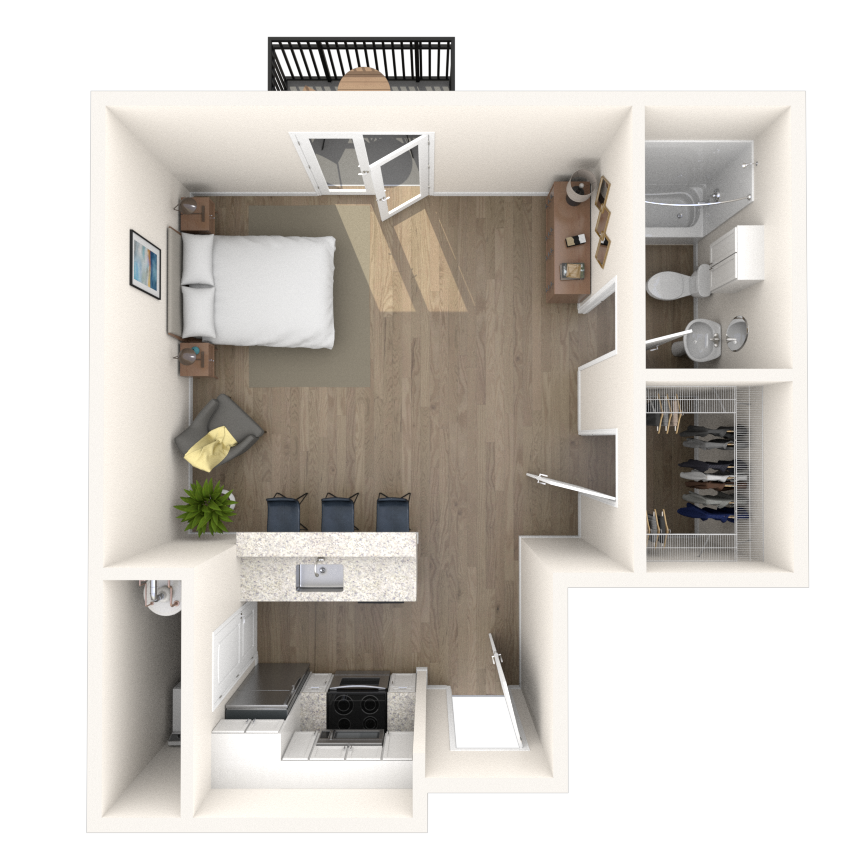 Studio, 1 Bath, 640 sq ftAvailable Oct 31Model Gallery
