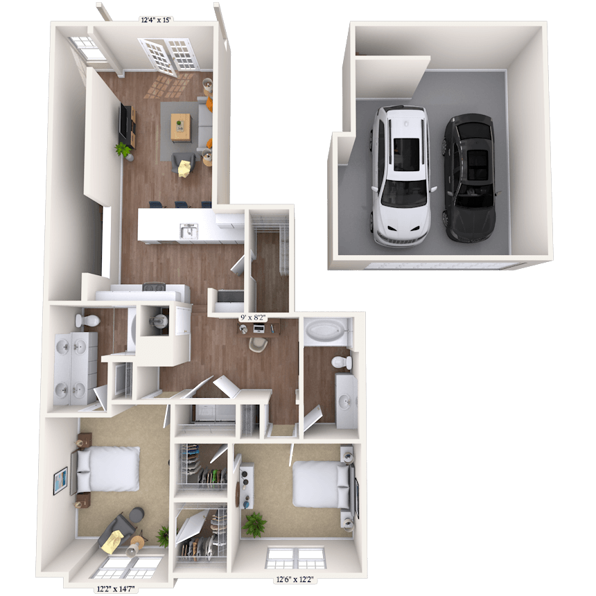 2 Beds, 2 Baths, 1143 sq ftAvailable NowCheapest 2 BedroomThis is the cheapest 2 Bedroom at this PropertyModel Gallery