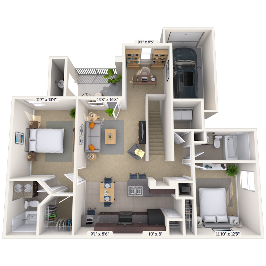 1 Bed, 1 Bath, 755 sq ftAvailable NowModel Gallery
