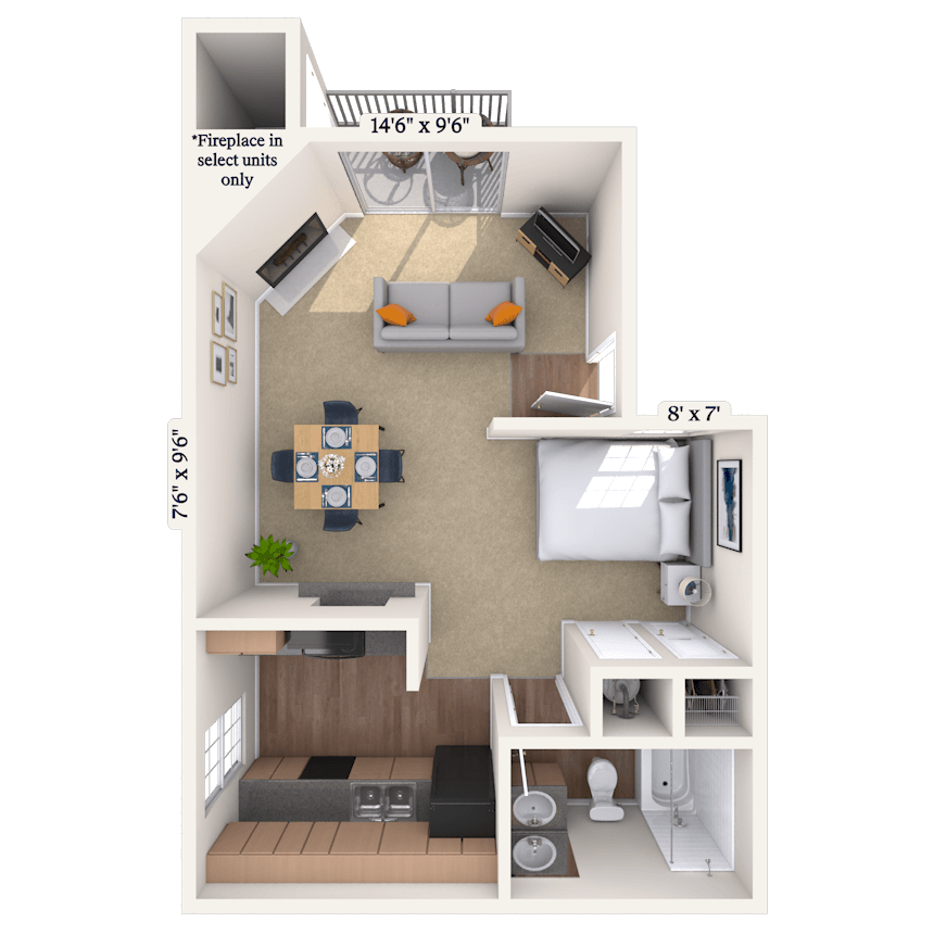 Studio, 1 Bath, 500 sq ftAvailable NowAvailability Details