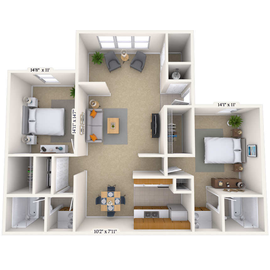 2 Beds, 2 Baths, 1044 sq ftAvailable NowModel Gallery