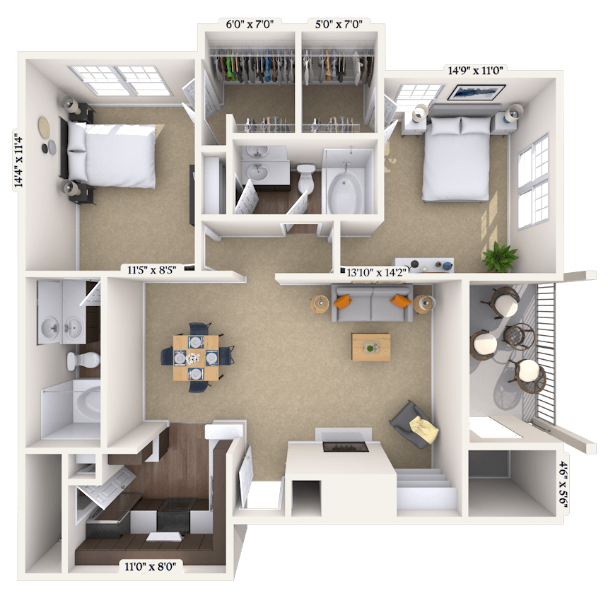 2 Beds, 2 Baths, 991 sq ftAvailable NowAvailability Details