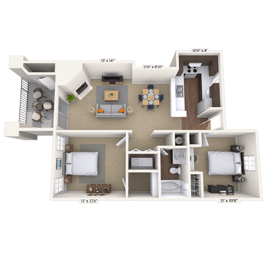 2 Beds, 2 Baths, 1019 sq ftAvailable NowModel Gallery