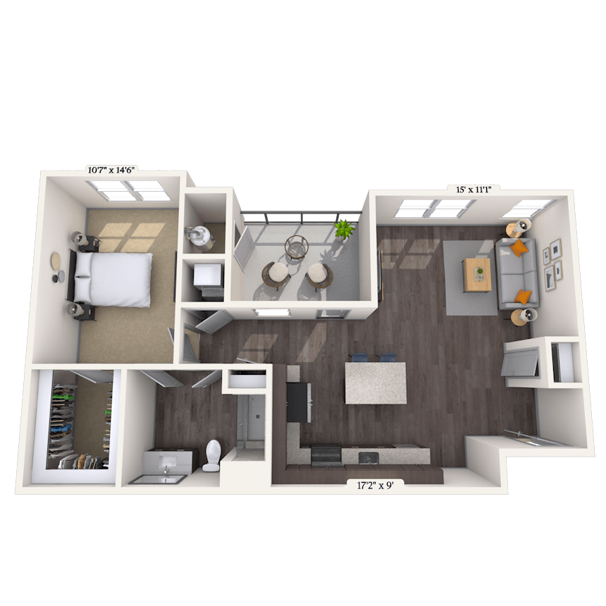 Durango - Floorplan 1 Apartment Unit: J-106Apartment Model: 1 Bed, 1 bath$1,5551 Bedroom, 1 Bath, 750 sq ftAvailable Now![]()