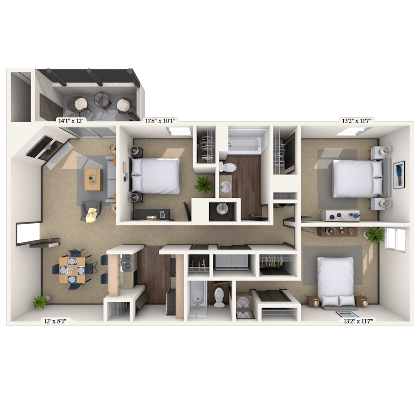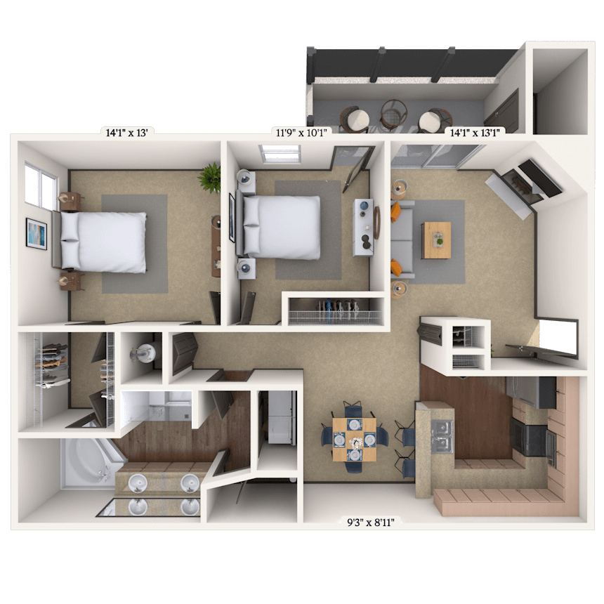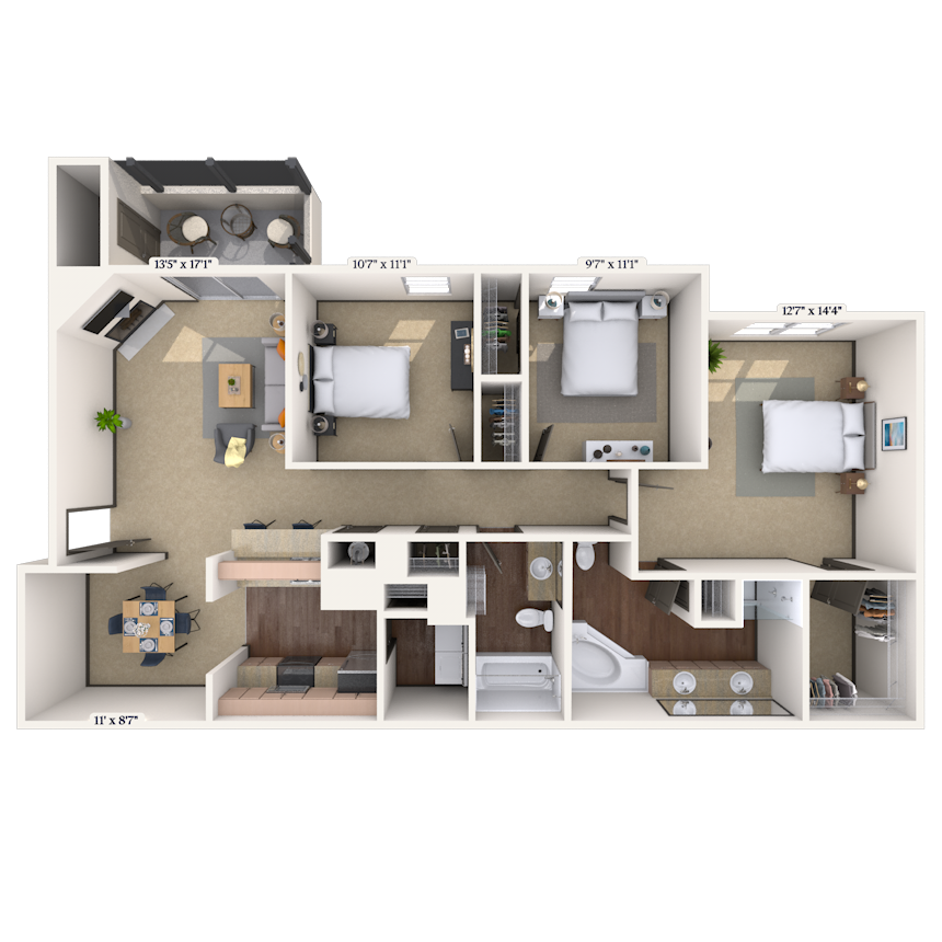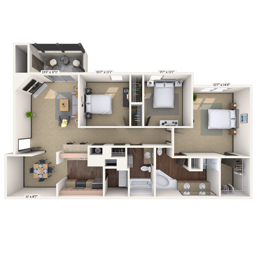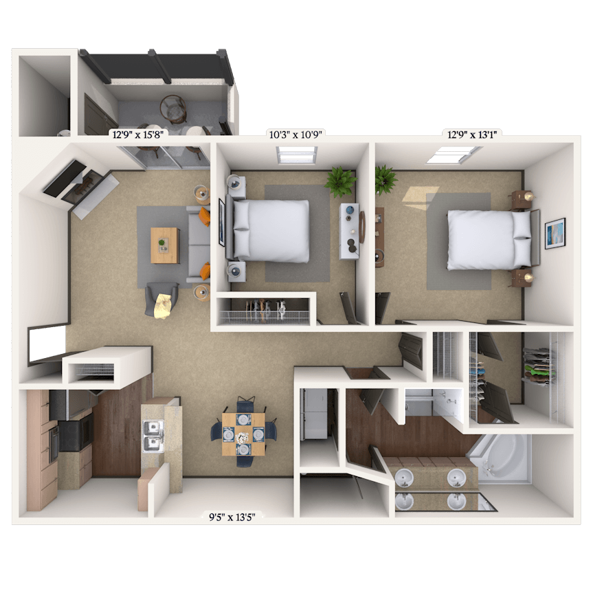 Apartment Model: Derby IIFrom $1,1431 Bedroom, 1 Bath, 1108 sq ftAvailable Now![]()