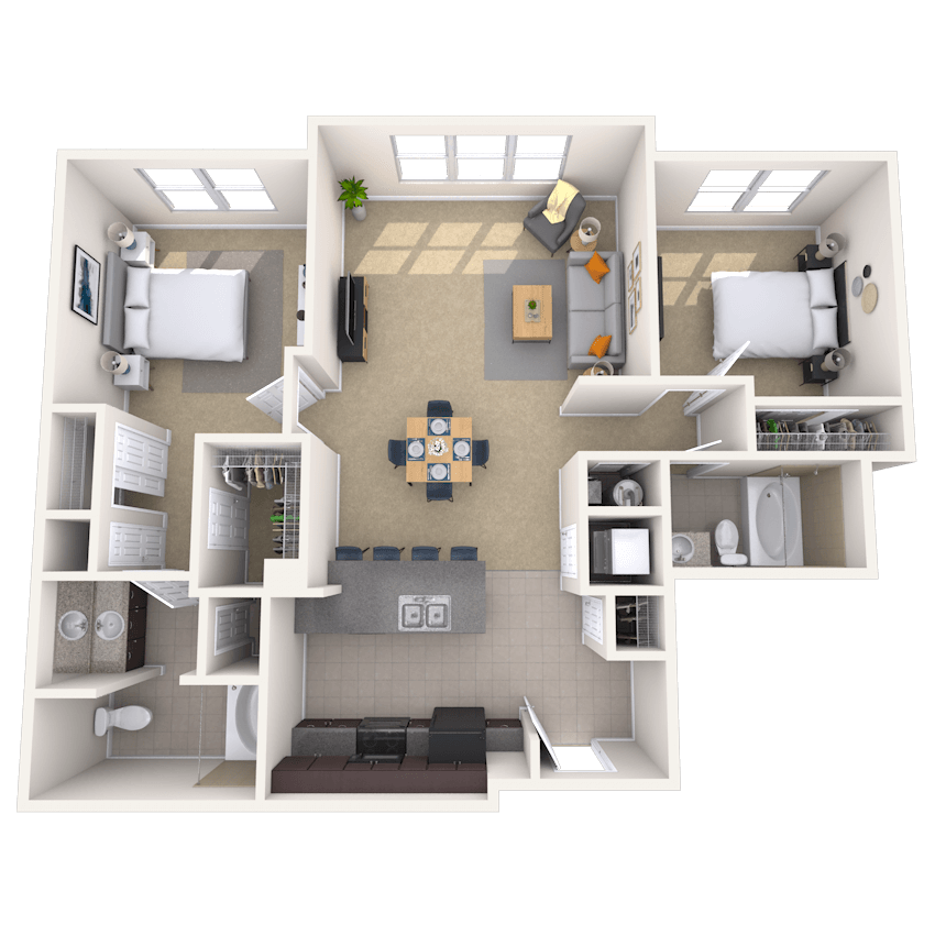 2 Beds, 2 Baths, 1052 sq ftPlus FeesAvailable NowModel Gallery