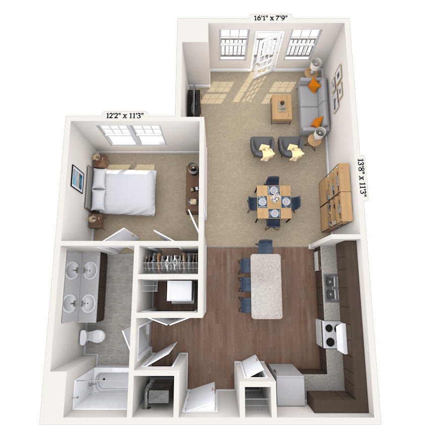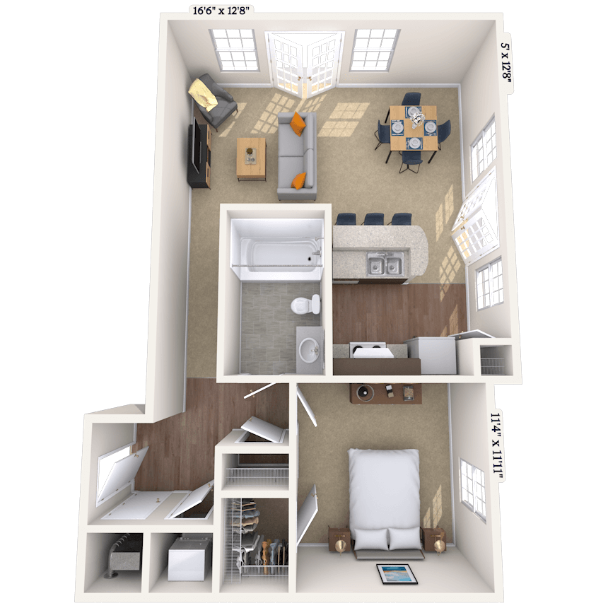 Apartment Model: 01AFrom $1,198Studio, 1 Bath, 496 sq ftAvailable Now![]()