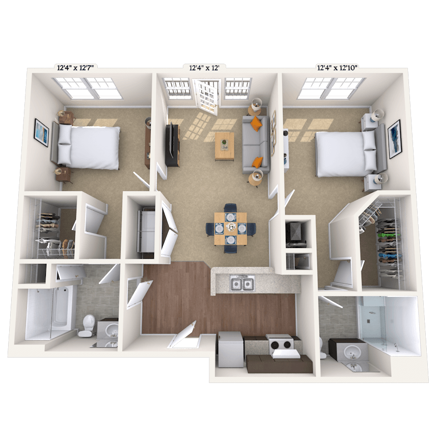 1 Bed, 1 Bath, 705-847 sq ftAvailable NowLargest 1 BedroomThis is the largest 1 Bedroom at this PropertyModel Gallery