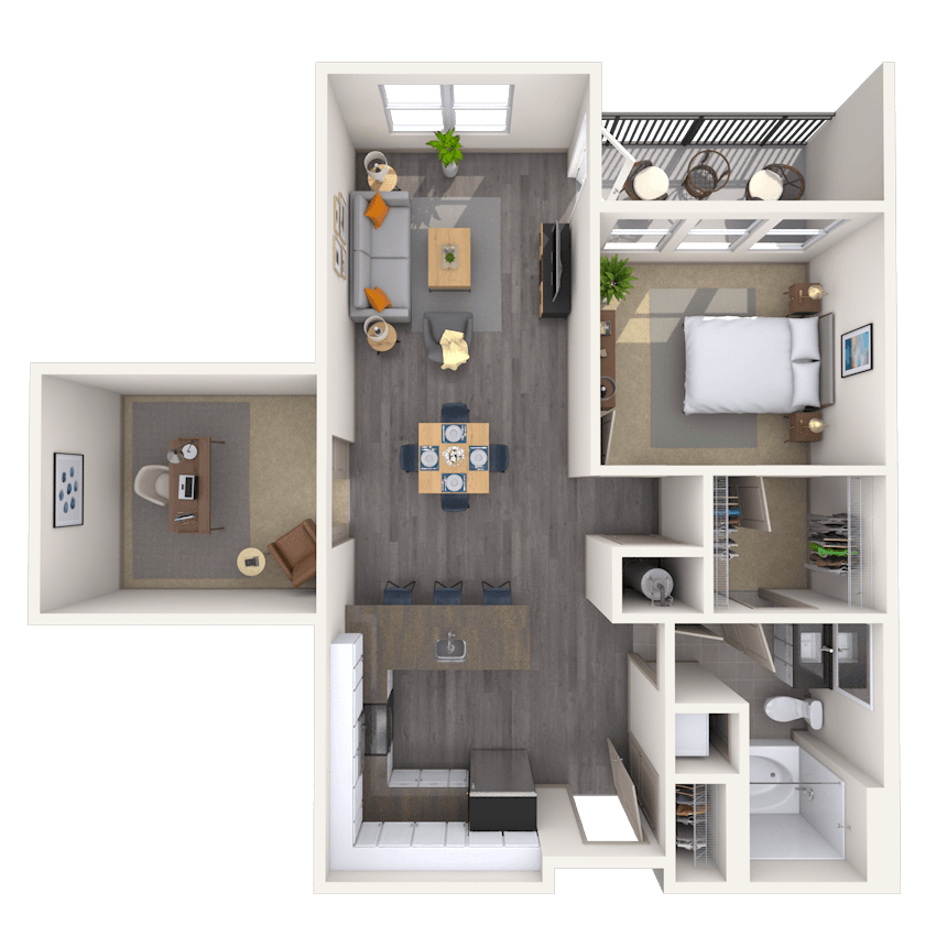 Studio, 1 Bath, 581-595 sq ftTotal Monthly PriceAvailable NowModel Gallery