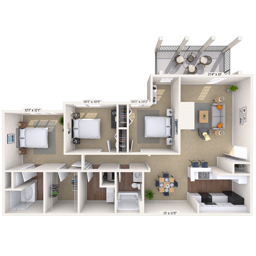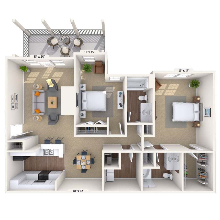2 Beds, 2 Baths, 1305 sq ftAvailable NowCheapest 2 BedroomThis is the cheapest 2 Bedroom at this PropertyModel Gallery
