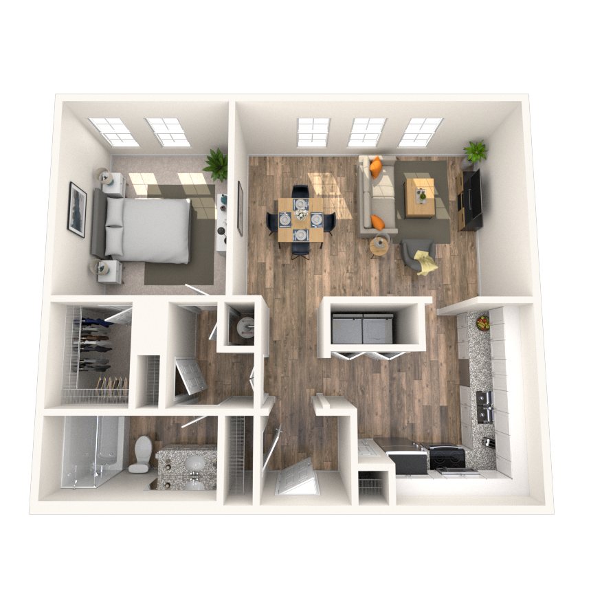 Apartment Model: Traditional 1x1 667-952 SFFrom $1,5151 Bedroom, 1 Bath, 667-952 sq ftAvailable Now![]()