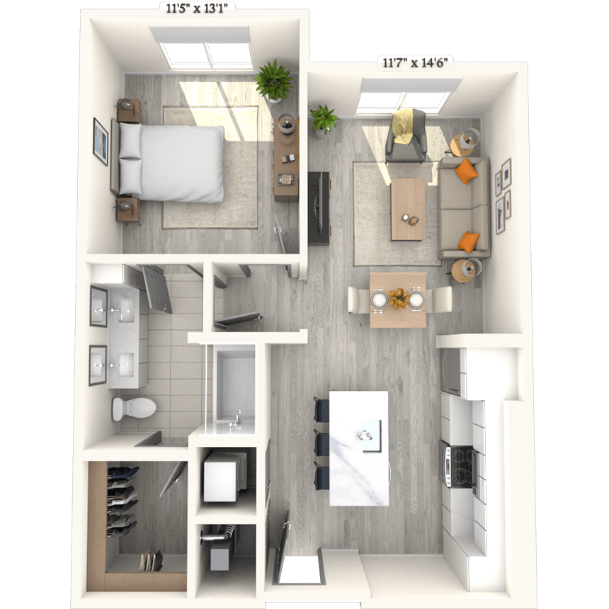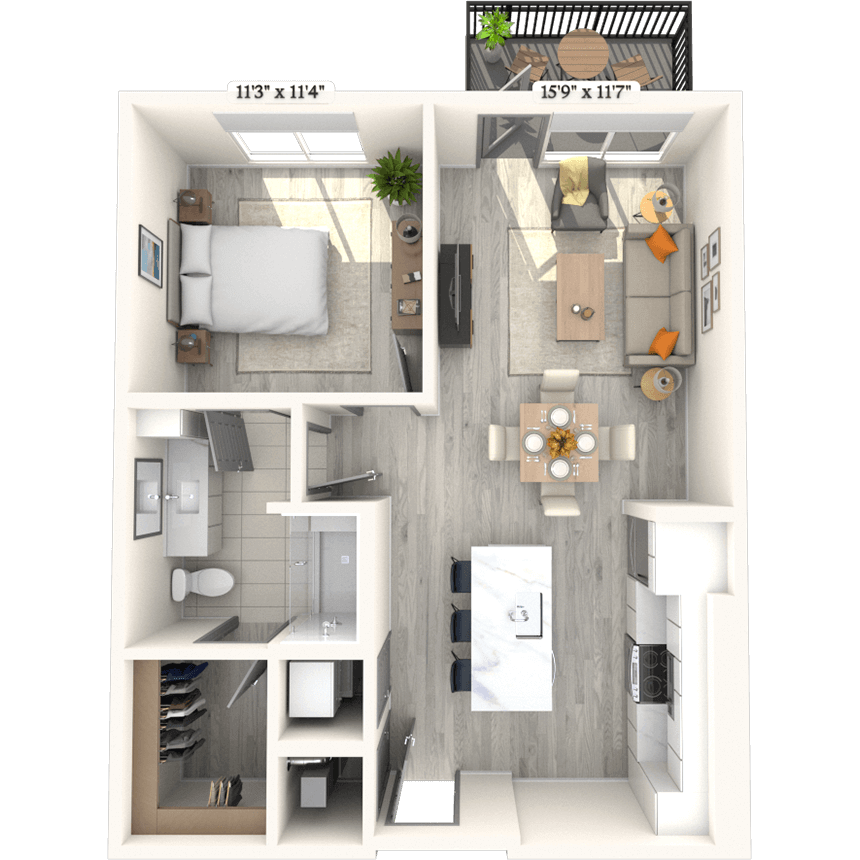 Apartment Model: Traditional A41 1x1 787 SFFrom $1,7581 Bedroom, 1 Bath, 787 sq ftAvailable Now![]()