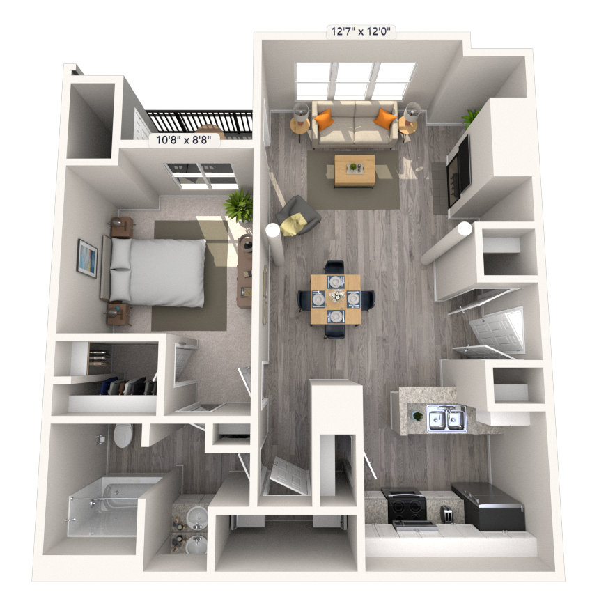 Apartment Model: Traditional 1x1 545-550 SFFrom $1,5401 Bedroom, 1 Bath, 545-550 sq ftAvailable Now![]()