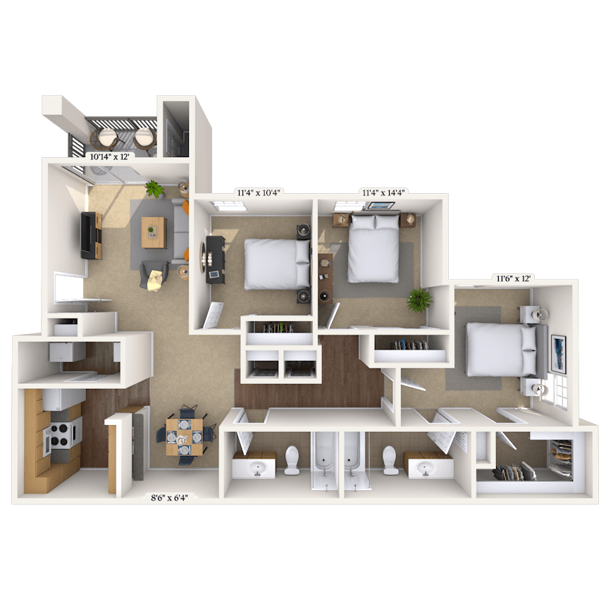 2 Beds, 2 Baths, 995 sq ftAvailable NowModel Gallery