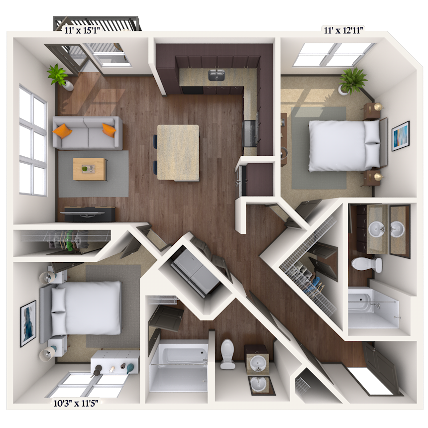 Apartment Model: Traditional 1x1 586-593 SFFrom $1,5151 Bedroom, 1 Bath, 593 sq ftAvailable Now![]()