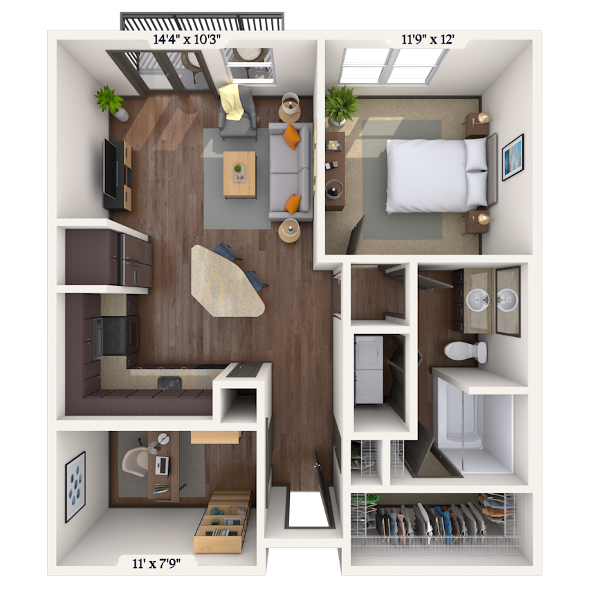 Apartment Model: Traditional 1x1 713-761 SFFrom $1,6251 Bedroom, 1 Bath, 713 sq ftAvailable Now![]()