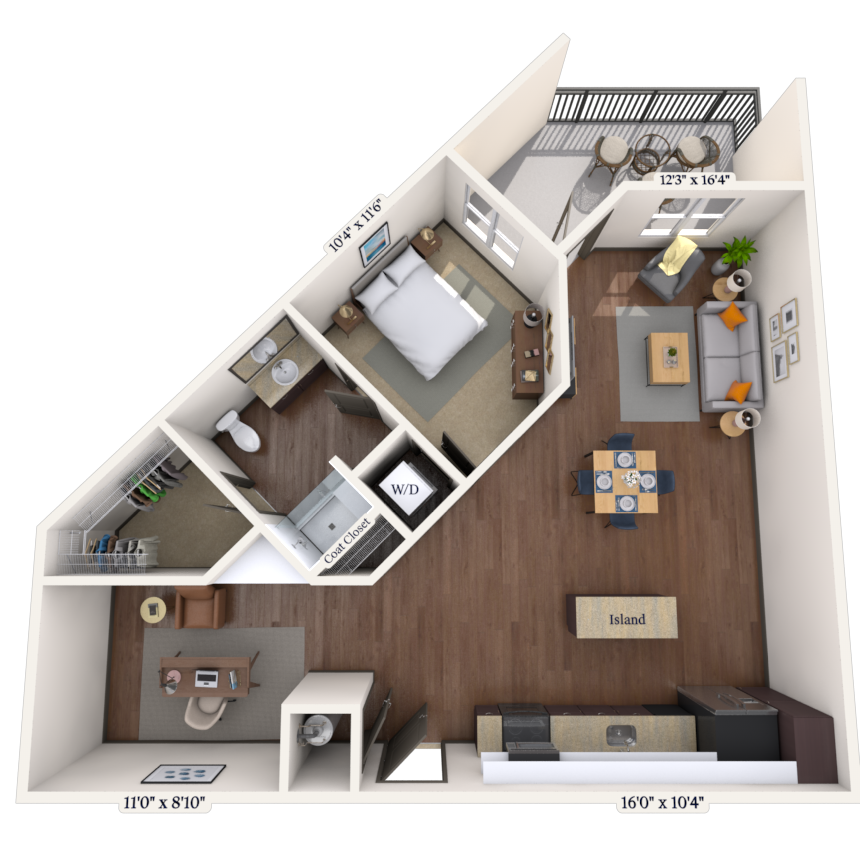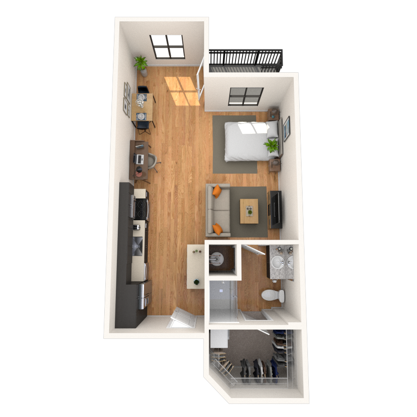 Studio, 1 Bath, 543-578 sq ftAvailable Feb 3Model Gallery
