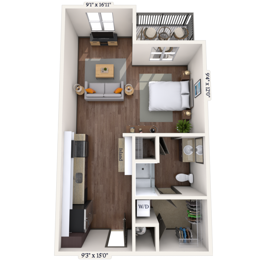 Studio, 1 Bath, 670 sq ftAvailable February 4, 2026Largest StudioThis is the largest Studio at this PropertyModel Gallery