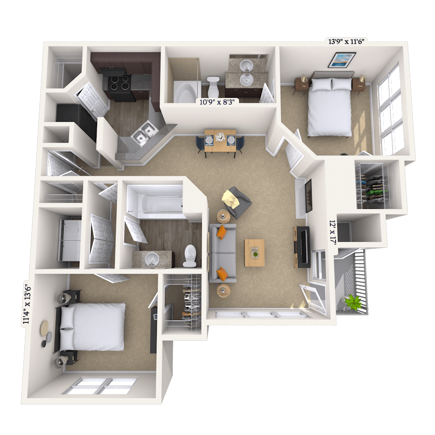 Apartment Model: SpyglassFrom $9931 Bedroom, 1 Bath, 567 sq ftAvailable Now![]()