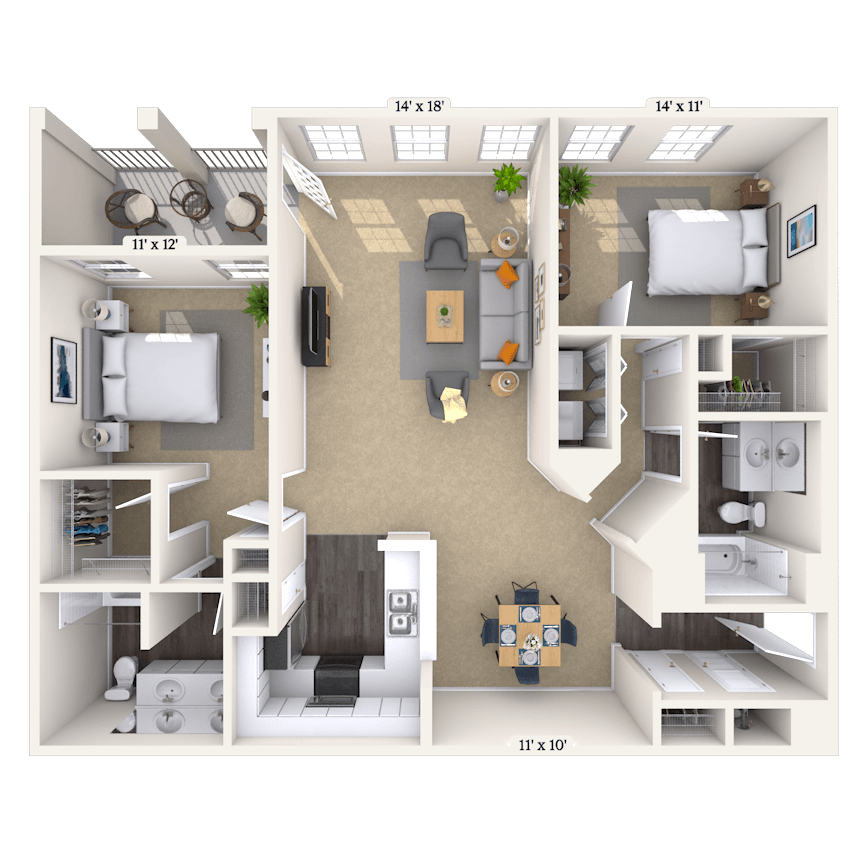 1 Bed, 1 Bath, 697-874 sq ftAvailable Dec 11Model Gallery