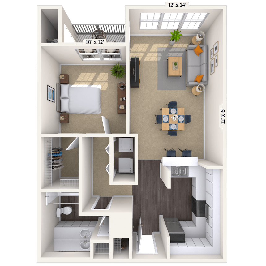 Apartment Model: Traditional 1x1 591-713 SFFrom $1,3651 Bedroom, 1 Bath, 591-692 sq ftAvailable Now![]()