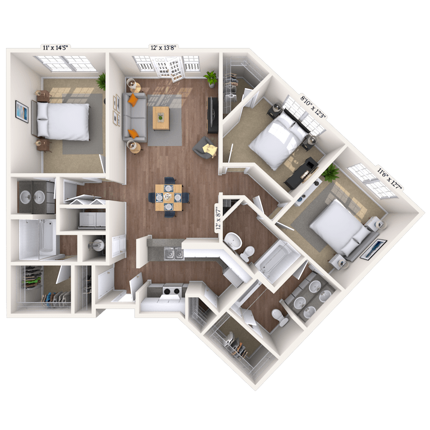 Apartment Model: Traditional 1x1 713-1138 SFFrom $1,6951 Bedroom, 1 Bath, 801-1138 sq ftAvailable January 9, 2026![]()