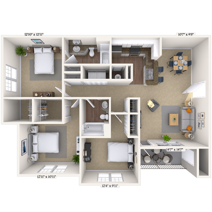 Apartment Model: 22BFrom $1,3432 Bedroom, 2 Bath, 1108 sq ftAvailable Now![]()