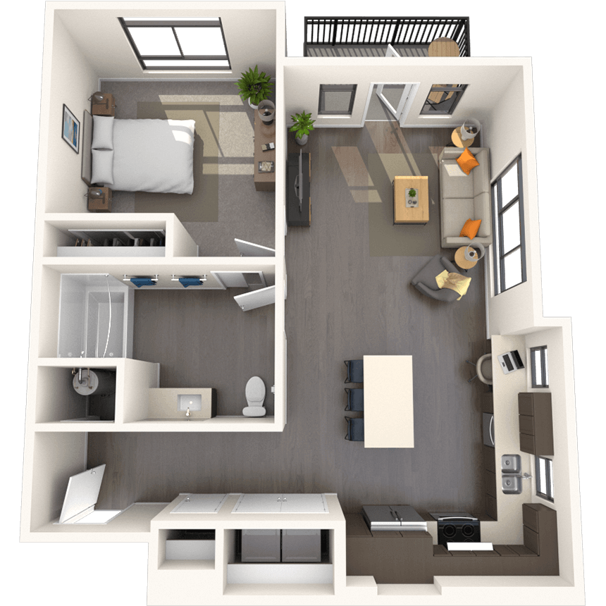 1 Bed, 1 Bath, 672-673 sq ftAvailable NowModel Gallery