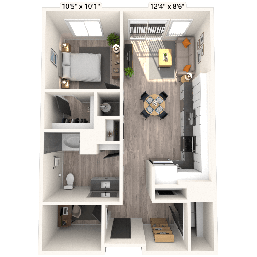 Apartment Model: S1 0x1 525 SF-FPFrom $1,198Studio, 1 Bath, 525 sq ftAvailable Now![]()