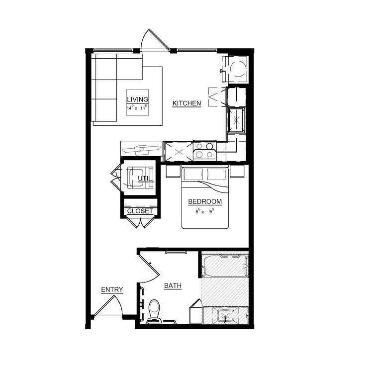 1 Bed, 1 Bath, 540 sq ftModel Gallery